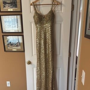 Stunning gold sequin gown with spaghetti straps. Perfect for formal events. Worn once.