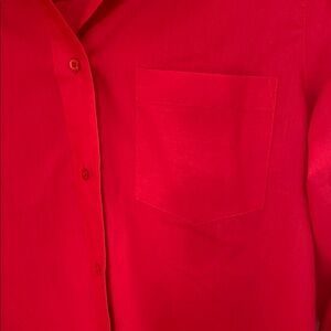 This vibrant red top from Foxcroft features a classic notched collar and long sleeves, offering a timeless button-down style. Crafted for comfort and elegance, it's perfect for both casual and formal settings.(BT)