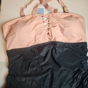 New Women's Peach Black Swimsuit Slimming Tummy Control . The first photo is for style only, not color. This is a peach and black swimsuit. Bin 851-33. Plus Size 18.