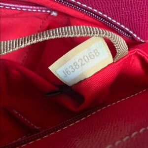 Pre owned tote. 11 x 13 x 5.5 handle drop 10. Zipped closure. Back zippered pocket. Red cotton cloth some spots inside at bottom. Inside pocket and slip pockets. Genuine pebble saffiano leather. Bottom edges show wear in corner.