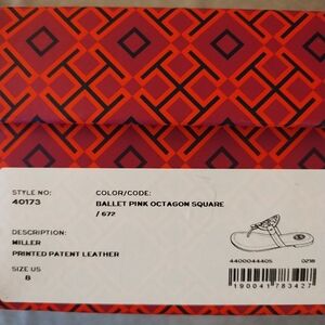 Tory Burch Miller Printed Patent Leather Sandals Ballet Pink Octagon Square Sz 8