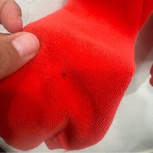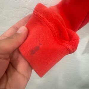 Right sleeve has several marks. There is also a mark along the zipper. Please see pictures.