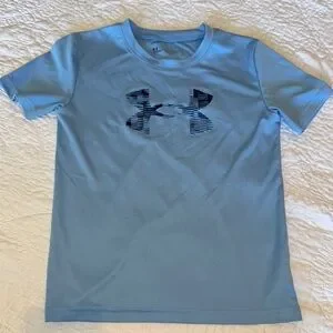 Under Armour set featuring a blue t-shirt and gray shorts. Perfect for casual wear. Boys Size 7