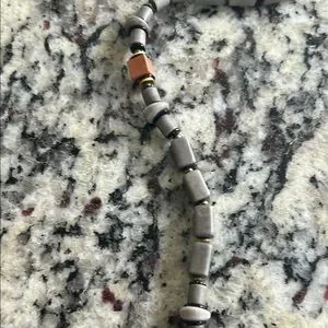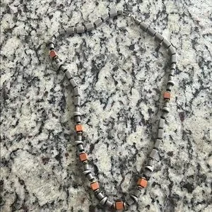 Elegant gray and orange beaded necklace perfect for any occasion. Add a touch of sophistication to your outfit with this stylish accessory.