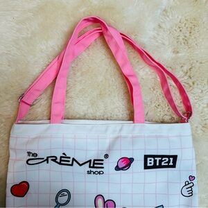 NWOT BT21 The Crème Shop BTS K-POP Summer Beach Pink/White Tote Bag
