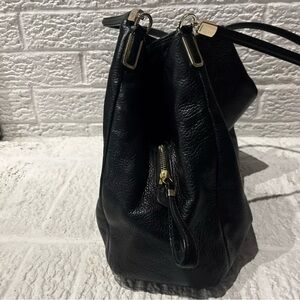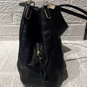 Sleek black leather bag by Coach. Ideal for any occasion.