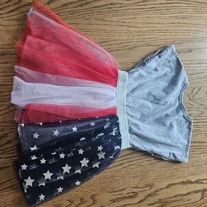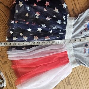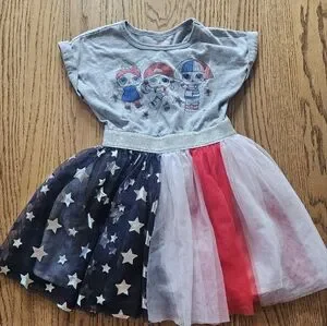 Adorable girls' dress featuring a starry tulle skirt. Gray top with playful characters. Perfect for fun occasions. measurements in pics (u)