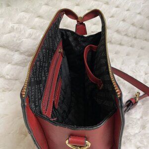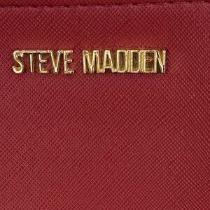 Steve Madden Bordeaux Red/Wine colored shoulder or crossbody handbag. Gold-tone hardware, adjustable strap. Black lining with inside, side pockets.