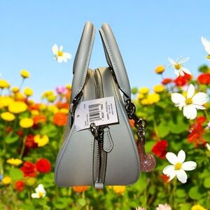 Coach Sydney Satchel Crossbody Lt. Sage Green Silver Logo Bag w/ pink cherry NWT