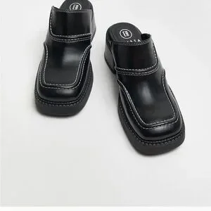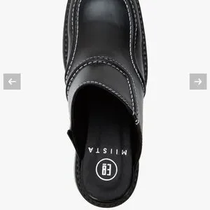 Rubi by Miista is the transitional summer sister of Malene; a mule-style shoe that encompasses the beauty of the boot in a slip-on silhouette. Formed of panels and shapes that play with The Opposite Thing: squared edges meet flowing lines and circles morph into rectangles – all bound with double contrast stitching and internal piping for extra emphasis. Made from a shiny black leather, she's complete with a subtle elastic gusset for your perfect fit and memory foam insoles for day-long comfort.