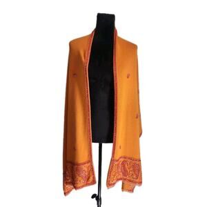 This beautiful scarf is perfect for adding a pop of color to any outfit. The orange knit fabric features a lovely paisley pattern and beaded accents for a bohemian, Indian, and festival-inspired look. Measuring 71 inches in length and 23 inches in width, this multifunctional scarf can be worn as a scarf, shawl, or wrap. It weights 2 ibs , very warm .