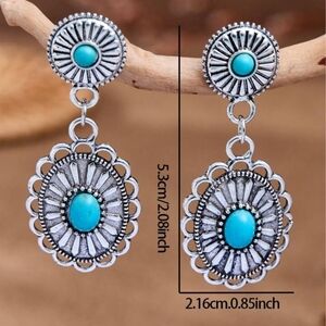 Elegant silver dangle earrings featuring vibrant turquoise stones. Perfect for adding a touch of color to any outfit.