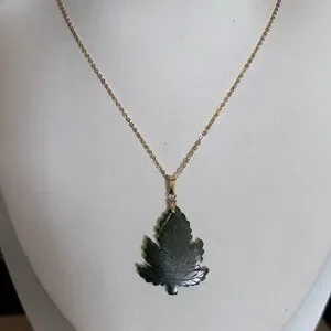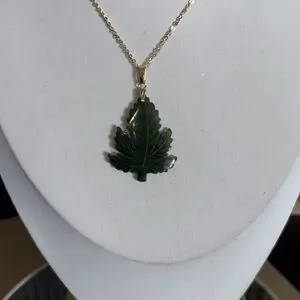 This elegant necklace features a beautifully crafted green leaf pendant, perfect for adding a touch of nature-inspired charm to any outfit. The gold chain complements the green pendant, creating a sophisticated look.18”