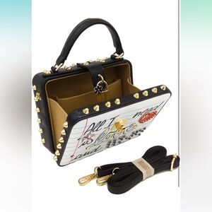 Chic and playful crossbody bag featuring a unique 'Love and WiFi' design. Perfect for adding a touch of fun to any outfit. Comes in classic black and white with gold accents.