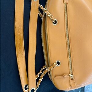 Authentic Chanel Orange Timeless Caviar Dome Zip Tote Shoulder Bag