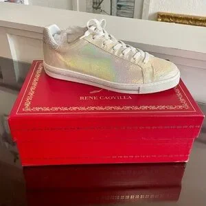 Stylish iridescent sneakers by Rene Caovilla. Features a shimmering design with a classic lace-up style.
