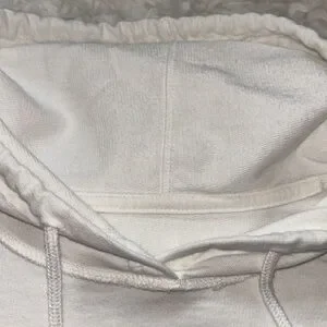 Has a distressed hem. Ribbed cuffs. Drawstring hoodie and kangaroo 🦘 pocket. Not a heavy fabric so can be worn anytime of the year. Great for those cool summer nights.