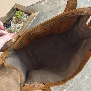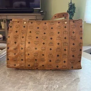 Elevate your style with the MCM Brown Monogram Tote Bag. This elegant bag features a classic brown color with the iconic MCM monogram design. Great pre-loved condition. Some ware on corners and scratches on MCM face plate. Inside is clean with a zippered pocket. Front pocket, long handles and soft leather. See pictures for bag details.