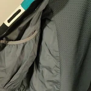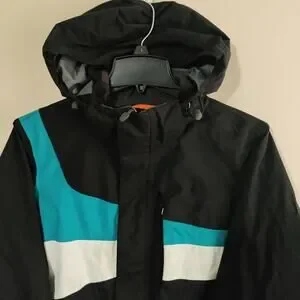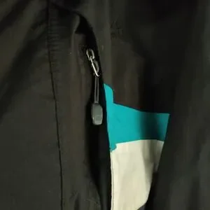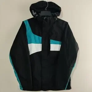 The Nike ACG Outer Layer 3 Jacket is a retro-inspired ski jacket designed for women in size M. Made from durable nylon material, this jacket features a striped pattern in a sleek black color. It comes with various accents such as zippers, embroidered logos, and a removable hood, making it both stylish and functional. With features like lining, zipped pockets, and water-resistant and wind-resistant properties, this jacket is perfect for outdoor activities in snowy or stormy weather conditions, making it a versatile and fashionable choice for any adventure seeker.