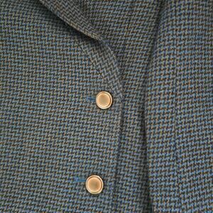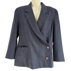 Vintage St. Sophia Paris Double Breasted Wool Blazer Jacket Houndstooth Navy Women's EU 42 US M