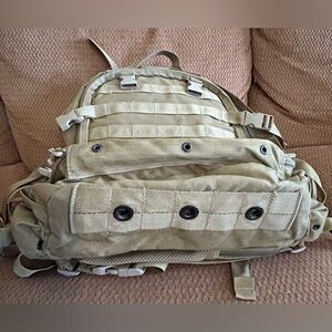 Durable tactical backpack in tan. Perfect for everyday use or training.