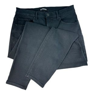 This pair of black high rise denim leggings by Express is perfect for any season. The 5-pocket design features a zip and button closure, with accents such as a logo on the back pocket. The fabric type is a blend of polyester, spandex, rayon, and cotton, making it easy to care for and wrinkle resistant. The slimming and stretchy features of these leggings make them a must-have for any wardrobe, and the inseam measures 27 inches.