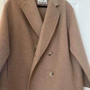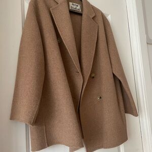 Acne Studios beige 100% wool coat in mint condition. Purchased at the Acne Studios boutique in New York City. Worn twice Notched collar & double breasted closure. Slit pockets & dropped armholes. Size XS/S US. Slightly oversized fit.