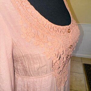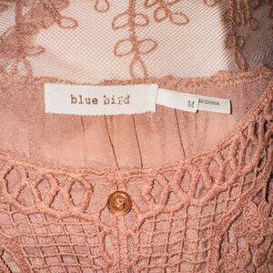 Anthropologie Blue Bird Boho Peasant Babydoll Crochet Lace M Cottage Dusty Rose