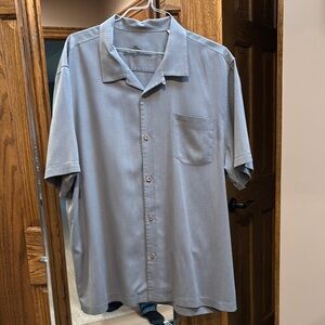 Experience the perfect blend of comfort and style with this Tommy Bahama gray casual button-down shirt. Crafted for a relaxed fit, it features a classic collar and short sleeves, making it an ideal choice for laid-back occasions. The lightweight fabric ensures you stay cool and comfortable all day long.