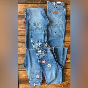 • Destruction, frayed hem, graphic and embroidered patch details
