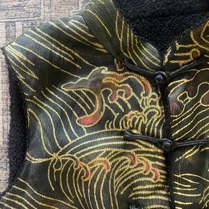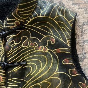 Vintage Asian Style fleece lined Black and Gold Patterned Vest