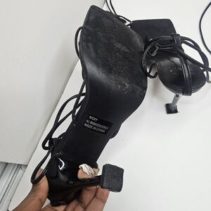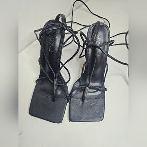 Mixx Shuz Black Strappy Thong Stiletto Heel Sandals - Size 7.5 Square Toe