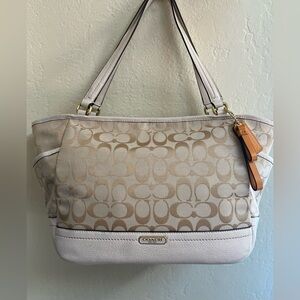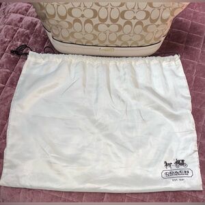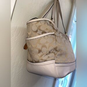 Coach Park Signature Cream and White Bag with side pockets and dust bag