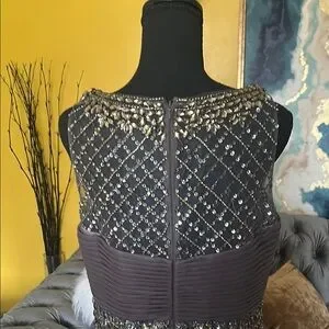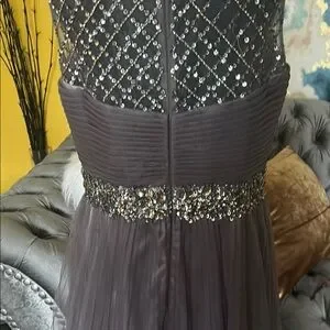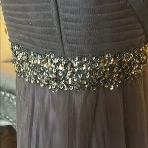 This stunning gray evening gown features exquisite detailing and a flattering silhouette. Perfect for special occasions.