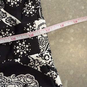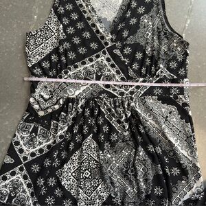 Make a bold impression with this eye-catching black and white maxi dress by Elementz Woman. Featuring an intricate scarf-style print and flattering gathered waist, this sleeveless dress is both elegant and effortless. The V-neckline and flowing silhouette provide comfort and polish, perfect for brunches, summer parties, or vacation evenings. Brand new with tags.