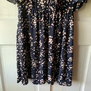 Madewell Tie V Neck Open Shoulder Button Front Navy Blue Fit & Flare Mini Dress