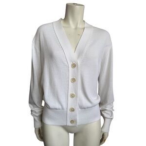 J. CREW bright white Summer v-neck cardigan cotton viscose women’s size large