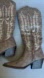 Stylish brown cowboy boots featuring intricate embroidery. Perfect for a Western look.