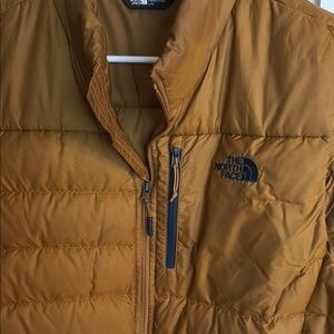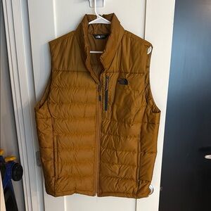 Stay warm and stylish with The North Face Men's Puffer Vest. This vibrant orange vest is perfect for layering and provides excellent insulation. Ideal for outdoor adventures or casual wear. Size large great condition.
