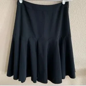 Vintage Anthropologie - black, fit and flat skirt with scallop detail stitching and pretty heart lining. Side button and hidden zip down. Waist is 16" and is 21" long.