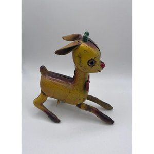 Vintage Wind Up Rudolph The Red Nose Reindeer Tin Toy, Made in Japan, Christmas