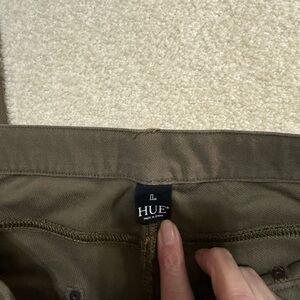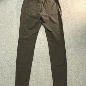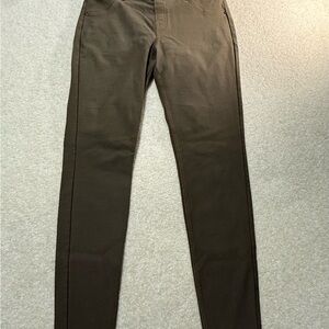 Hue size large jeggings. Brown with orange stitching. Pull on style with false front pockets and real back pockets for a fitted jean look. See pictures for measurements.