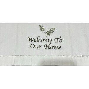 2 Vintage Welcome To Our Home, kitchen Decorative linen Farmhouse Green White LN