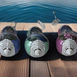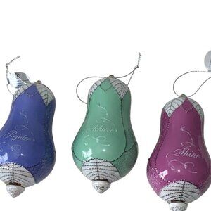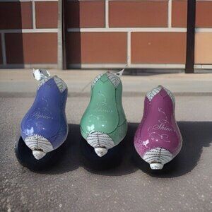 No visible damage; ornaments in excellent condition. Each ornament measures approximately top to bottom = 4 inches.