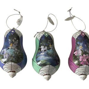 3 Porcelain Mimi Jobes Fairyland Heirloom Christmas Ornament Set Handcrafted Col