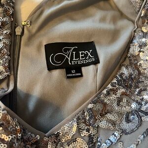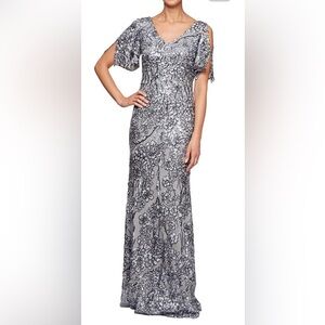 Alex Evening Silver Sequin Gown NWT