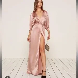 Reformation Olivine Maxi Long Pink Dress Wrapped Size S