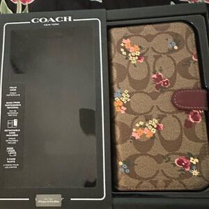 Stylish Coach folio case with floral design. Features a detachable case and folio.
