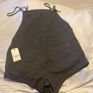 Billabong Wild Pursuit Romper. Play all day, dream all night. A laid-back take on the short overall, the Wild Pursuit features a vintage washed and well-worn woven fabric with classic overall pockets. A blend of playsuit and overalls, details include a rolled hem and thin straps that tie at the front. Slash front pockets. Back patch pockets. Front bib pocket. Rolled hem. Adjustable shoulder straps. Approx. inseam: 3". 60% Cotton 40% Viscose. Machine wash. Imported.