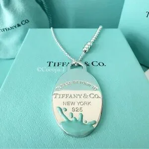 🩵 Tiffany & Co. 🎨 RARE Return To Tiffany Blue Splash Tag Oval Pendant 🤍